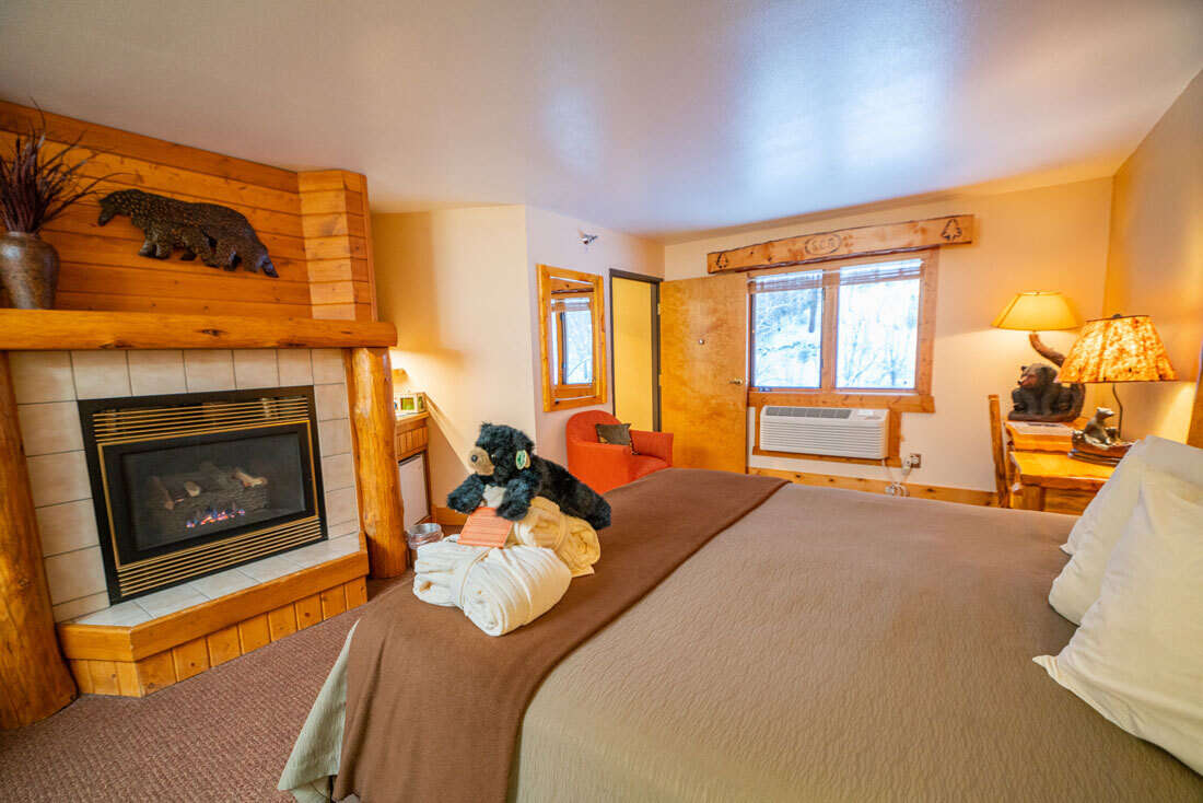 This suite features a king bed, gas-burning fireplace, a desk, and an armchair seating area. With breathtaking views of Spearfish Creek from our second floor, the Black Elk Suite is your perfect home away from home!