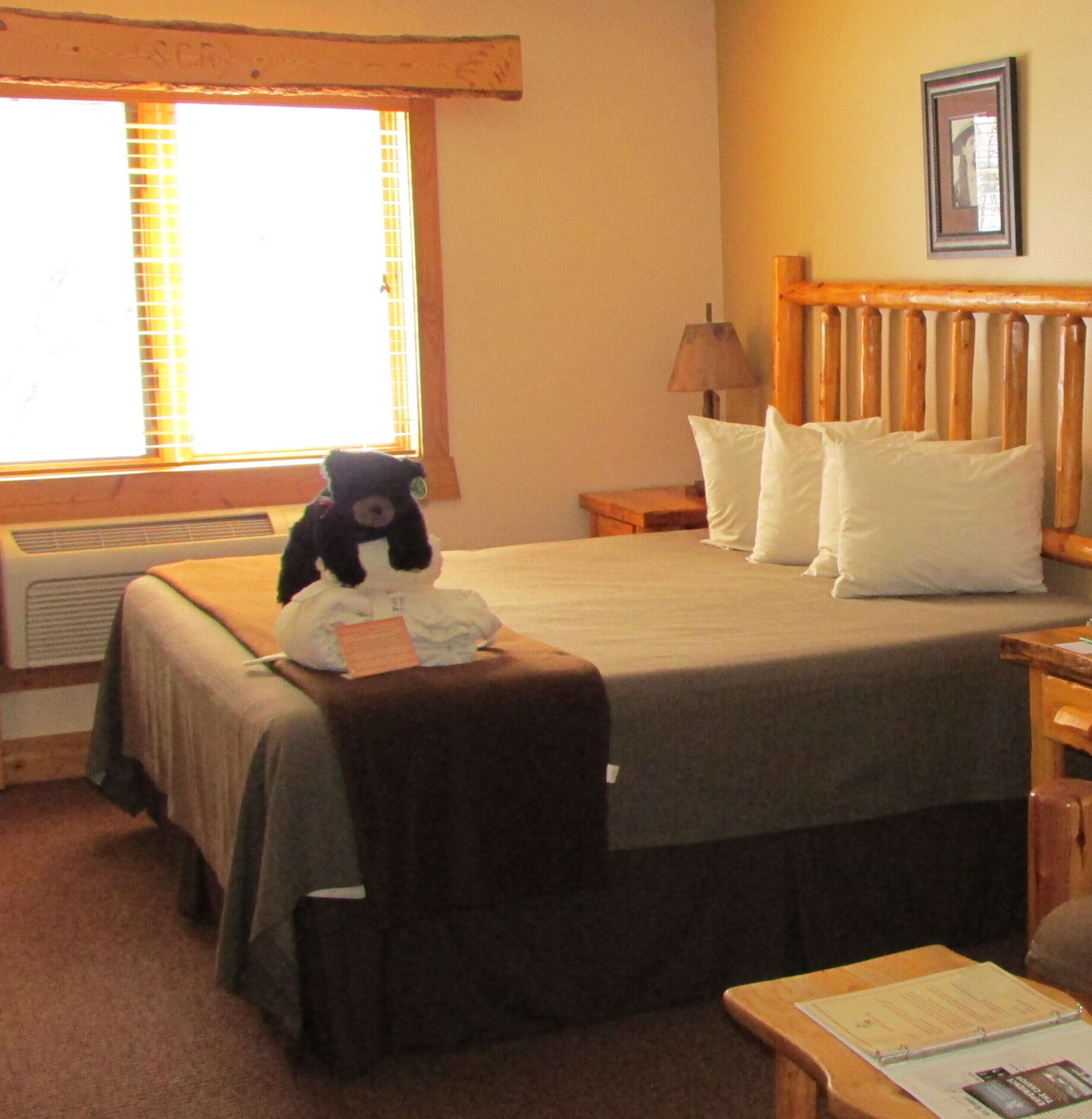 The plush king bed or the log accented loveseat make a great place to curl up and escape the world. Enjoy the gas burning fireplace inside and the lovely view of Spearfish Creek right outside your window. There is a mini-fridge and microwave as well – enjoy some complimentary coffee, hot chocolate, or popcorn! The Custer suite is located on the first floor.