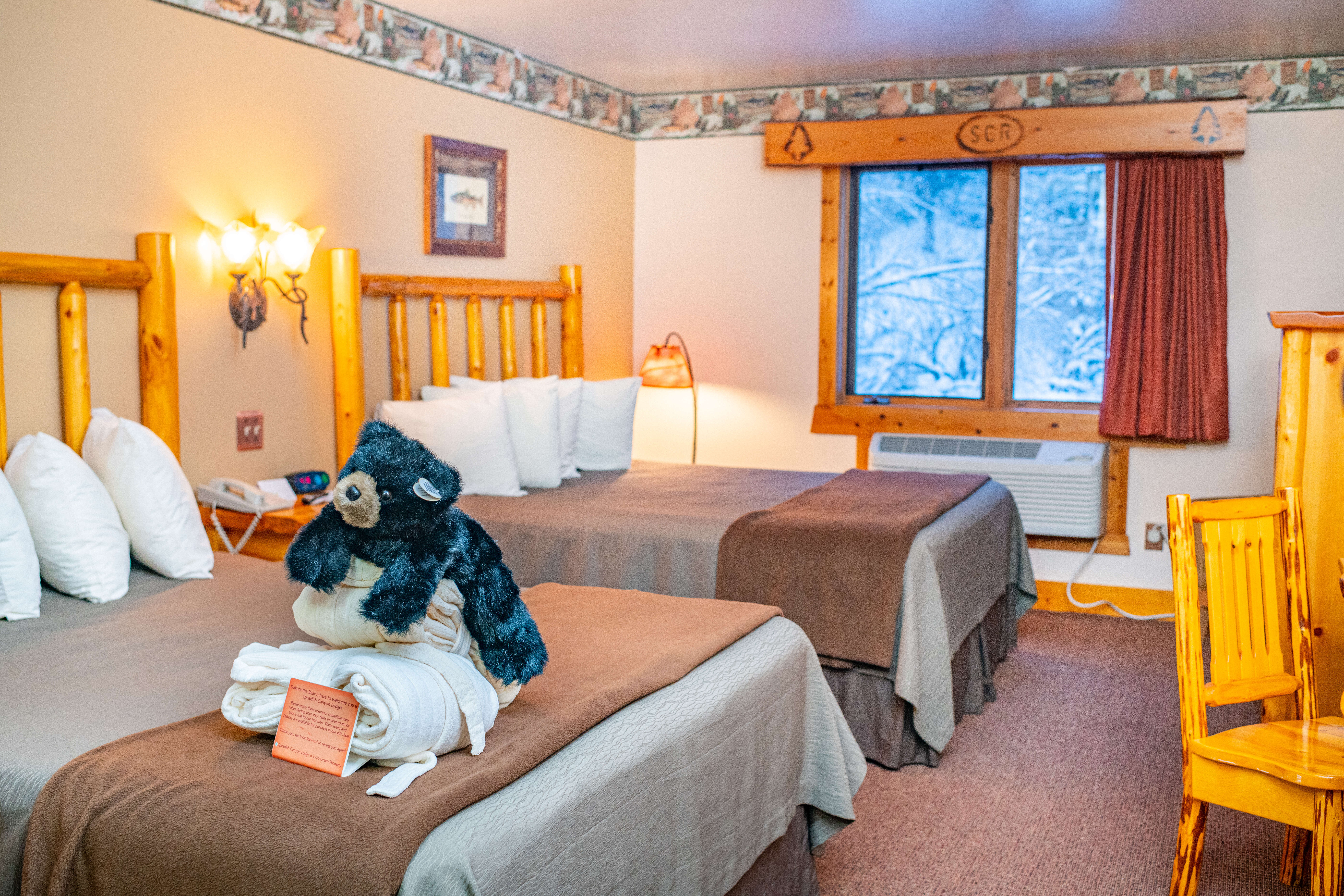 These comfortable premier rooms have been completely re-done with gorgeous new wood decor and log furniture.